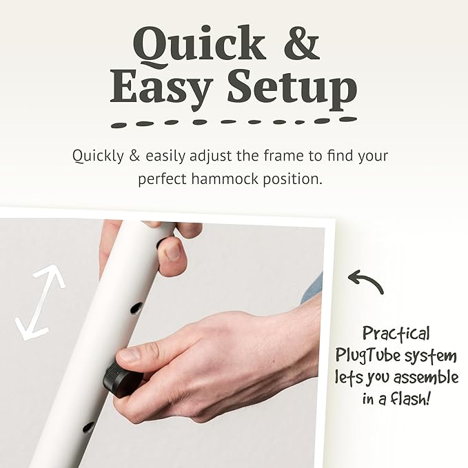 - VERSATILE OUTDOOR STAND: The hammock stand features a plug-in system for easy assembly, adjustable height, and a durable powder-coated steel build. Suitable for indoors or out, the stand is easy to clean, making it a perfect addition to your home, whether in the bedroom, on the porch, or in the garden.