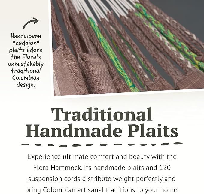 LA SIESTA Flora Classic Cotton Hammock with TreeMount & Straps - Extra Large Patio & Indoor / Outdoor Hammock Bed, 2 Person King Size, Chocolate