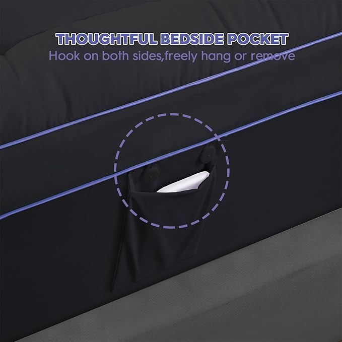 - 【Intimate & Elegant】: ABENE twin foam mattress toppers are innovatively designed with a thoughtful bedside pocket, which is suitable for mobile phones, remote controls, glasses, and other small items, creating additional storage and tidy space, eliminating the trouble of bed accumulation. This storage bag is connected by buttons, and there are hanging ears on both sides of the bed, which can be installed and removed as you like. Two purple piping edges add elegance to a plain bed