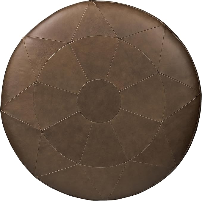 POLY & BARK Gio Ottoman – 30” Round with Feather-Down Topper – Full-Grain Leather Upholstery – Couch Ottoman for Living Room – Vintage Italian Leather in Cocoa Brown