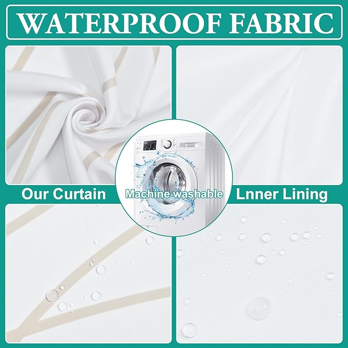 - Easy to Clean & Care: The 100% polyester shower curtain with snap-in liner is machine washable. Maximum ironing temperature: outer curtain 110°C/230°F, liner 70°C/158°F Note: Simple ironing can create a better visual experience.