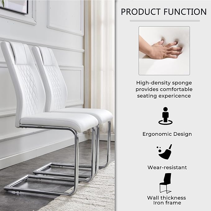- Modern Dining Table for Versatile Use: Elevate your dining space with our spacious and modern dining table. Designed with a touch of sophistication, it comfortably seats 4-6 people. This table is also versatile, serving as a display table, generous coffee table, or an elegant presentation table, perfect for family gatherings and parties. Kitchen Table: 63.8'' x 37.8'' x 29.9''. Dining Chair: 16.54"D x 21.26"W x 39.37"H.