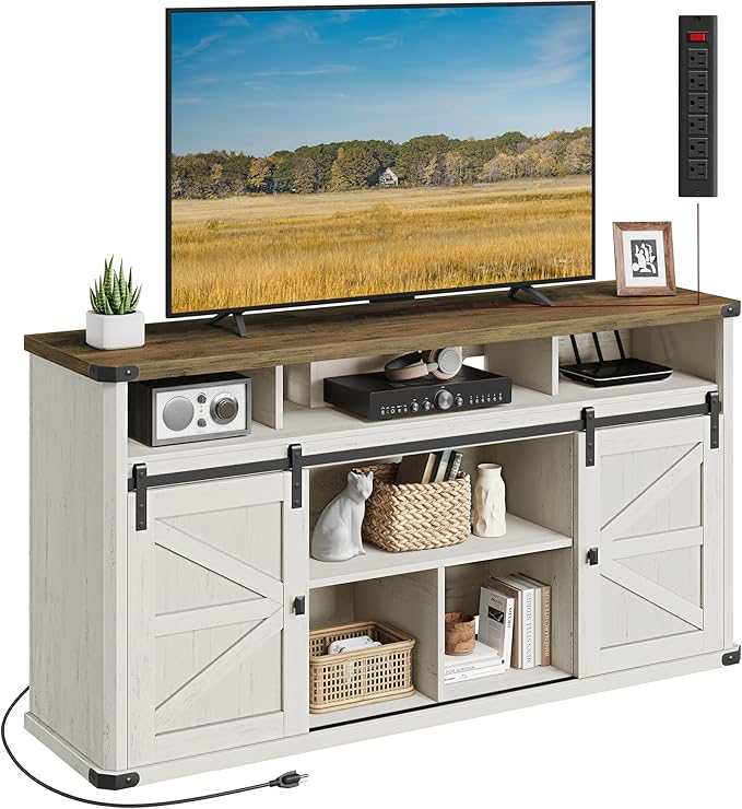 - [Easy Cable Management] The farmhouse TV stand comes with cable holes and ties that help prevent cable tangles, keeping your entertainment area neat and orderly and enhancing the overall look of your space