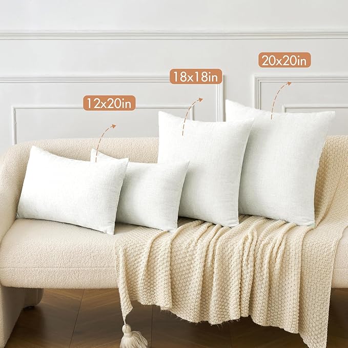 MIULEE Pack of 2 Couch Throw Pillow Covers 12x20 Inch Soft White Chenille Pillow Covers for Sofa Living Room Solid Dyed Pillow Cases