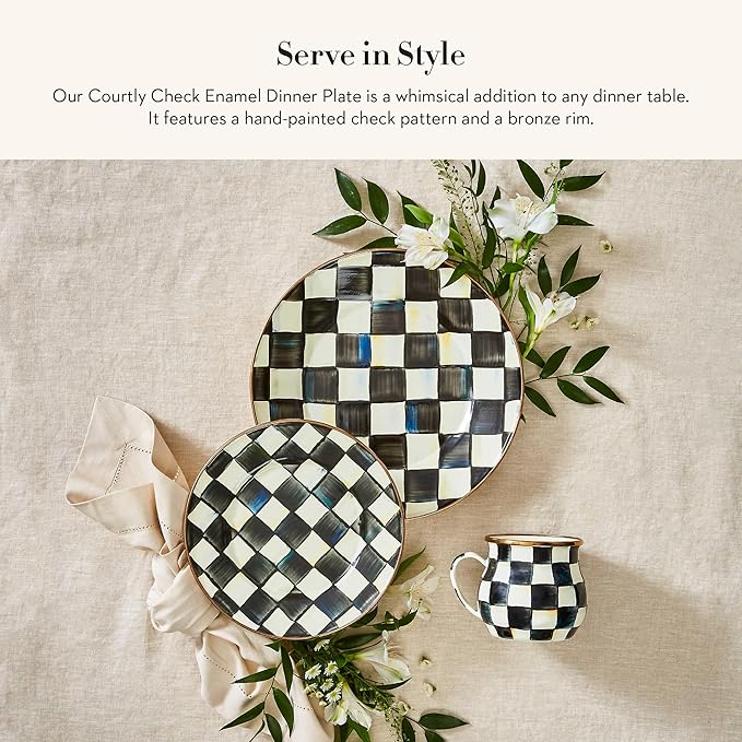 - ELEGANT SERVING ESSENTIAL: Our classic Courtly Check plate is made with heavy-gauge steel and features black-and-white checks and a bronzed stainless-steel rim. It’s a great addition to holiday dinnerware or an everyday dish set.