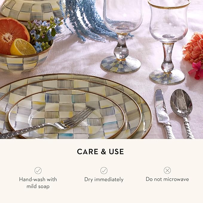 MACKENZIE-CHILDS Enamel Dinner Plate, Decorative Dinnerware Plate, 10 Inches, Set of 4, Gray-and-White Sterling Check