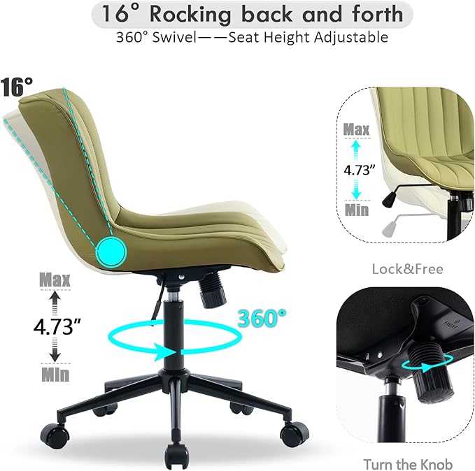 YOUNIKE Ergonomic Home Office Desk Chair with Wheels Comfy Armless Criss Cross Chair with Back Adjustable Modern Leather Upholstered Swivel Vanity Chair Small Cute Rolling Task Chair Avocado Green
