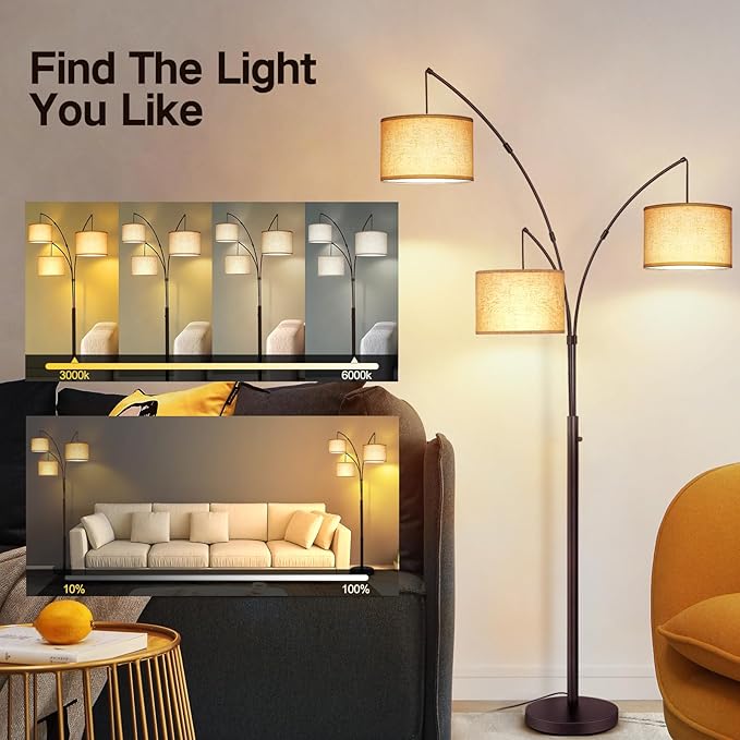 - 3 Light Led Tall Lamp: OUTON 81" Height arc lamp boasts 3 long and wide arms that extend like an arc, providing light in the middle of the room while keeping the lamp off to the side. Position it in a corner to create a cozy reading nook on your sofa or display it prominently to showcase its trendy and curved profile. This tall and large lamp offers unmatched versatility and makes a striking impact in any space