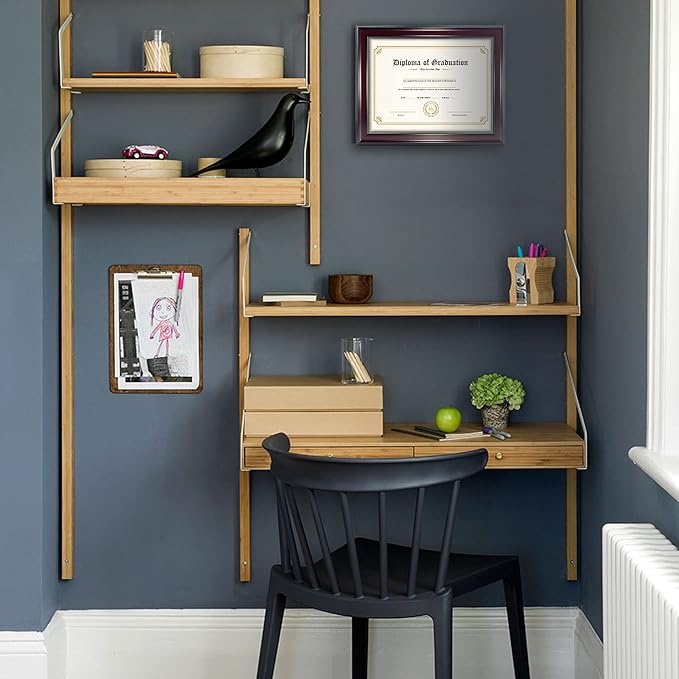 - 【MATERIAL】The frames are made of high quality recyle polystyrene with a nice red wood grain finish, durable and environmentally friendly. With UV protection acrylic, making it looks more professional and heavy duty to display your priceless diploma, certificate or pictures for many years.
