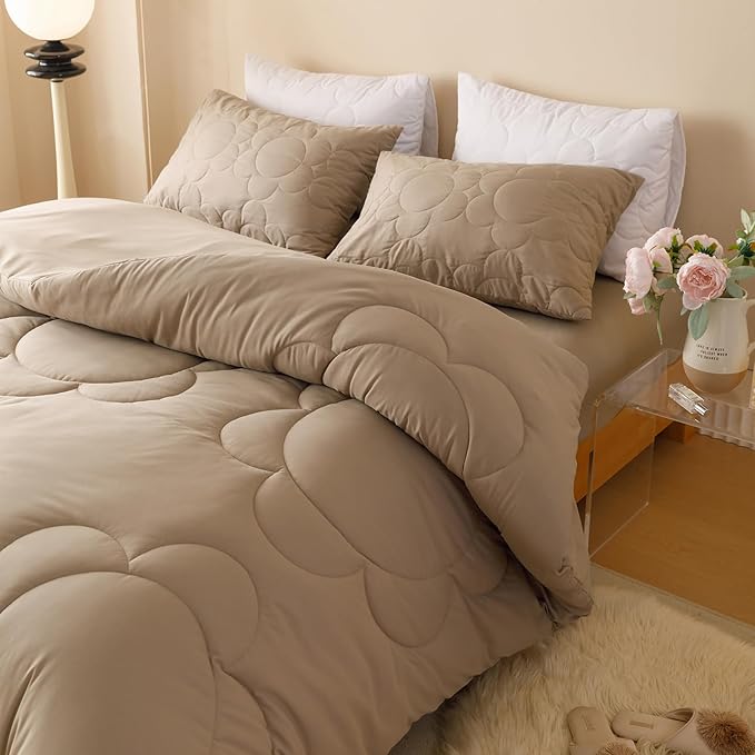 Luxlovery Cream Coffee Comforter Set Twin Light Cream Coffee Quilts Khaki Bedding Comforter Set Solid Plain Color Soft Breathable Tapue Comforter for Teens Kids