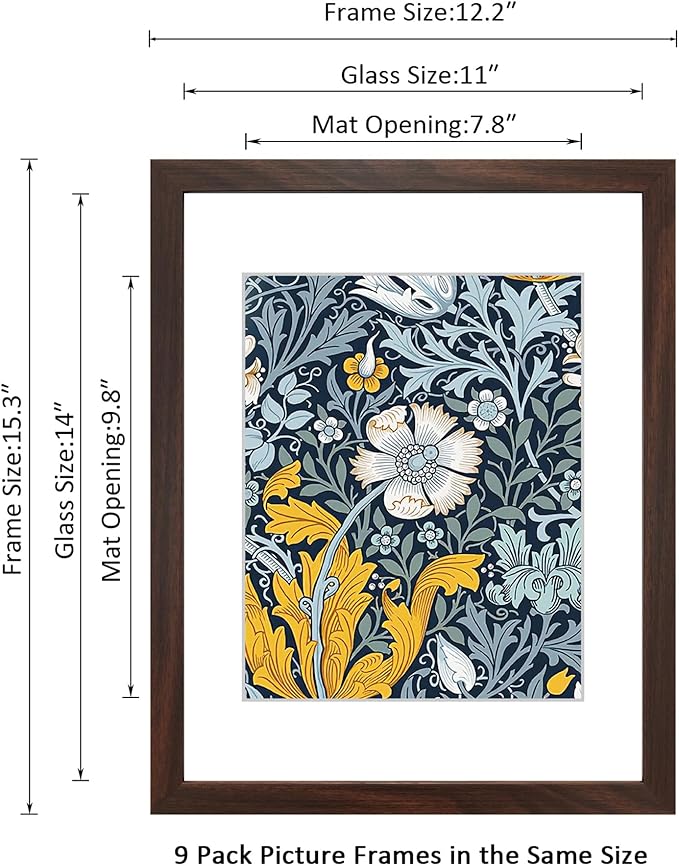 - EXQUISITE DESIGN: 9 Pack picture frames in the same size. Perfect for pictures 8x10 with Mat or 11x14 Without Mat. An ideal decoration for your home and office.