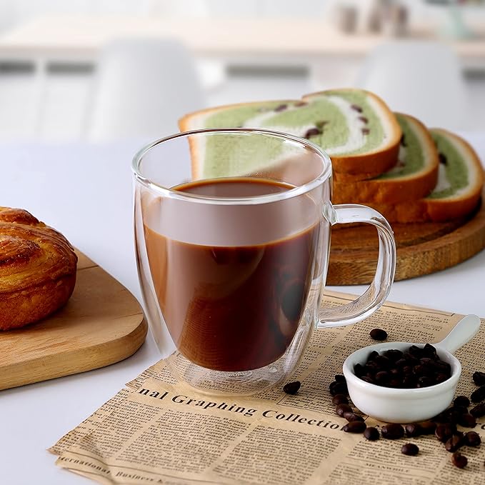 - KEEPS YOUR BEVERAGE HOT OR COLD FOR LONGER: Double walled glass mugs provide excellent insulation for both hot and cold drinks, allowing you to enjoy your beverage at the perfect temperature for longer periods of time.