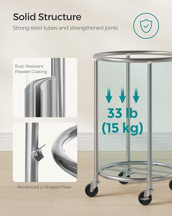 - Stable and Durable: With sturdy steel tubes and reinforced U-shaped plates, this laundry organizer boasts a solid structure that can support up to 33 lb. The powder coating makes the tubes rust-resistant for greater durability
