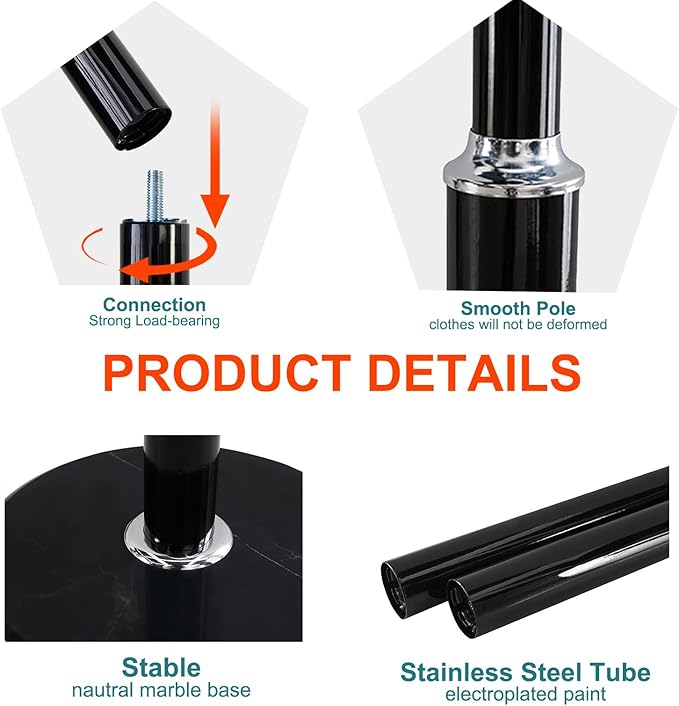 - STURDY STAINLESS STEEL FRAME:OIRUMIE coat hanger stand is made of stainless steel. The standing coat rack is not easy to deform and has stronger bearing capacity. The coat rack freestanding adopts advanced nano-baking paint technology, but also is a coat rack with no odor, rust, and bright color