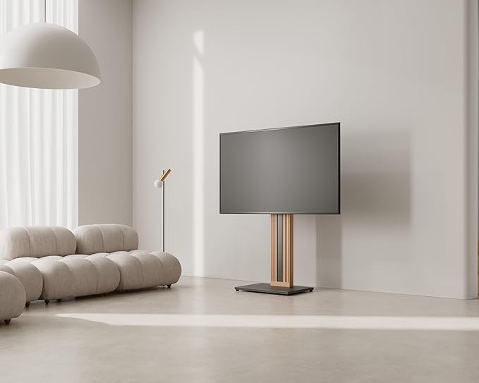 - 【Durable and stable】Worthy of premium quality, the beech wood was used as train rails for its sturdiness and durability, and now we are using it and reinforced steel base to support your precious new TV. With a load-bearing of 88 lbs for the TV mount stand, it brings you the highest-tier stability free from vibration or looseness.