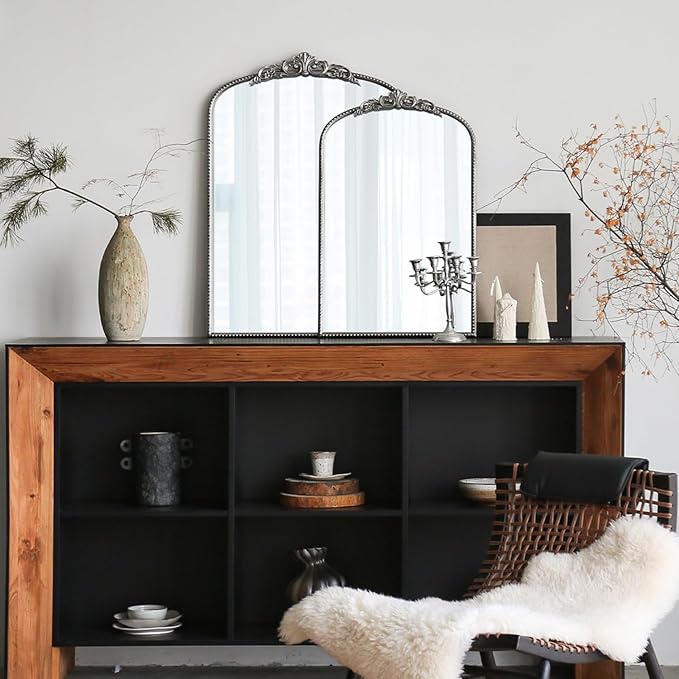 Micasso Arched Mirror, Traditional Vintage Ornate Mirror, 31" x 19" Antique Baroque Silver Wall Mirror for Bathroom Bedroom Living Room