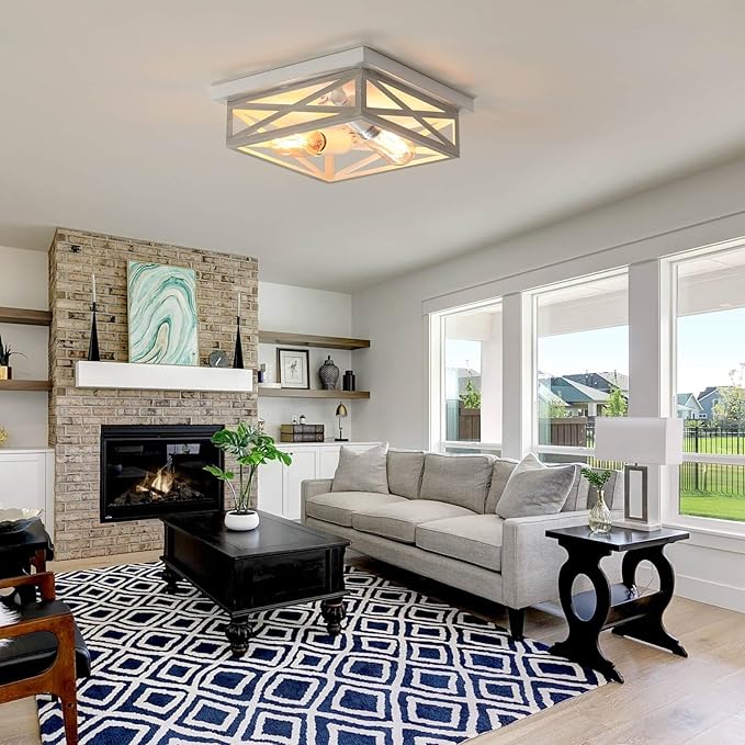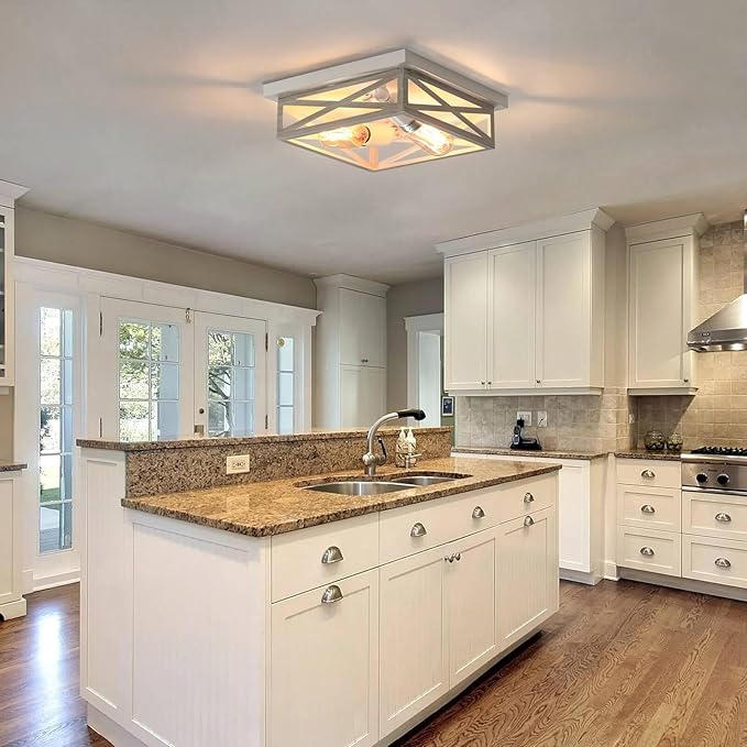 - Farmhouse Flush Mount Ceiling Light Fixtures: Rustic Kitchen Light Fixtures use a multi-layer paint process, open metal cage design that allows the exposed bulbs to shine brightly and gives out 360° illumination to light up the whole room