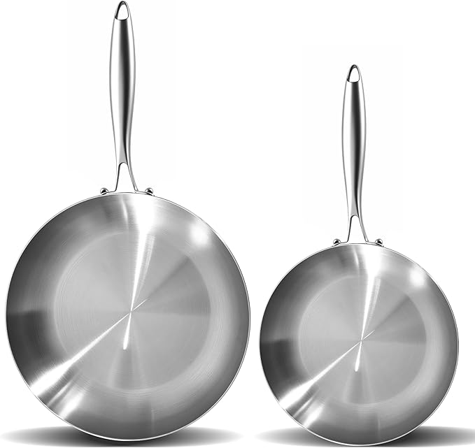 - Tri-Ply Stainless Steel:All Lolykitch stainless steel pan made with a high-purity aluminum core sandwiched between 2 layers of durable stainless steel, excellent durability for year to come.Brushed polished food grade stainless steel for cooking surface,plus won't adverse react with food to alter natural tastes
