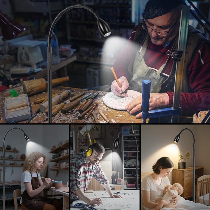 - Extra Flexible and Elegant Gooseneck - 360° adjustable gooseneck helps direct the light to any area you need. This slim and sleek profile not only helps save table and desk space, but also matches easily with any home decor style. Cannot wait but to light up any corner of your home with this stylish LED floor lamp in a deep black matte metal finish. You can imagine this multifunctional lamp to be a perfect Birthday, Housewarming, Wedding and Christmas gift.