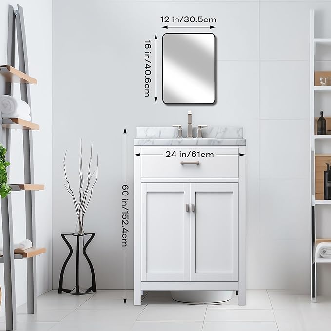 - Exceptional Quality: Our small bathroom mirror is made of high-quality glass, reflect high-definition imaging without distortion. The frame is made of advanced aluminum alloy frame, which is waterproof, non-rusted and sturdy. The back of the mirror has an MDF backplate, which can effectively prevent mirror splashing