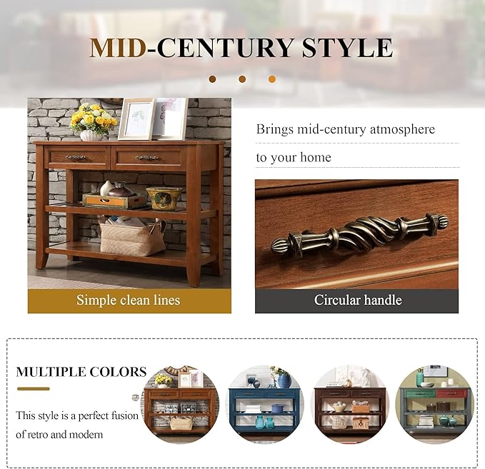 42inch Mid-Century Wood Console Table with 2 Drawers and 2 Bottom Shelf Sofa Table Solid Wood Sideboard(Brown)