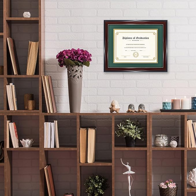 - 【MATERIAL】The frames are made of high quality recyle polystyrene with a nice red wood grain finish, durable and environmentally friendly. With UV protection acrylic, making it looks more professional and heavy duty to display your priceless diploma, certificate or pictures for many years.