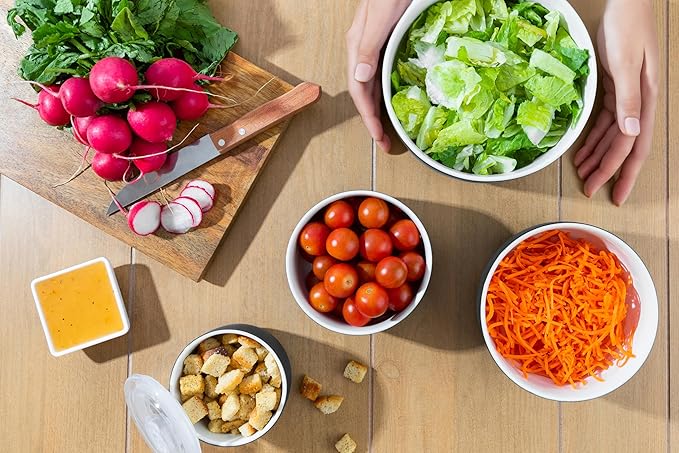 - Salads, Soups & Beyond: Includes 50, 28, 16, and 9 oz bowls. Each is designed with a beautiful matte finish, satisfying weight and goes right into the dishwasher for easy cleanup