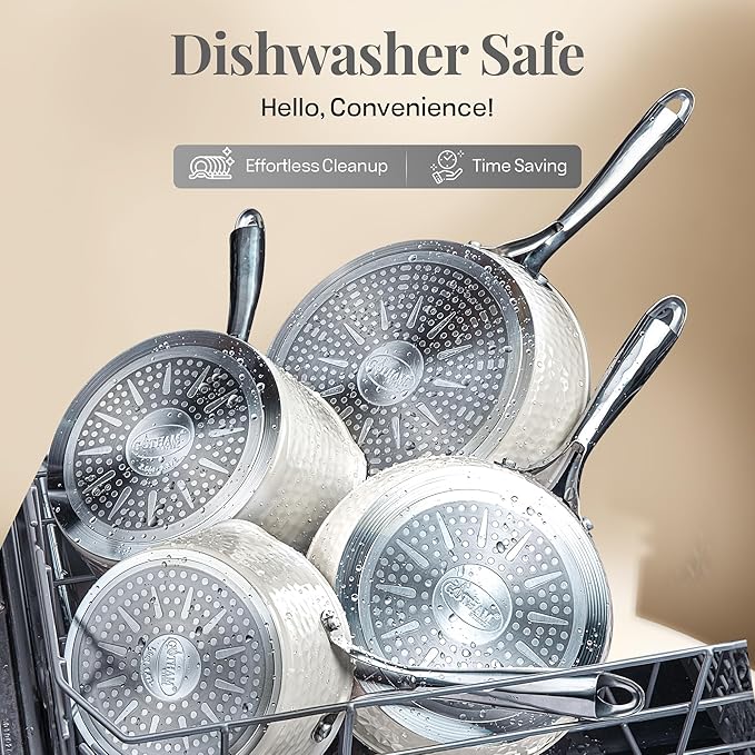 - EFFORTLESS CLEANUP, DISHWASHER SAFE: Spend less time with cleanup! After all the cooking and prepping is done, place cookware in the dishwasher for quick and easy cleanup.