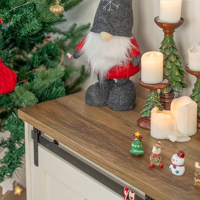 - Farmhouse Design:WAMPAT TV stand crafted from finest wood grain surface and featured barn doors that slide easily, allowing easy access to all necessities. The side of the coffee table is decorated with Z-shaped wooden strips.Suitable for all the decor style and increase aesthetic for your living room. Attention: The TV stand and coffee table are shipped separately, so you may receive these two packages at different times.