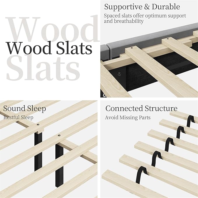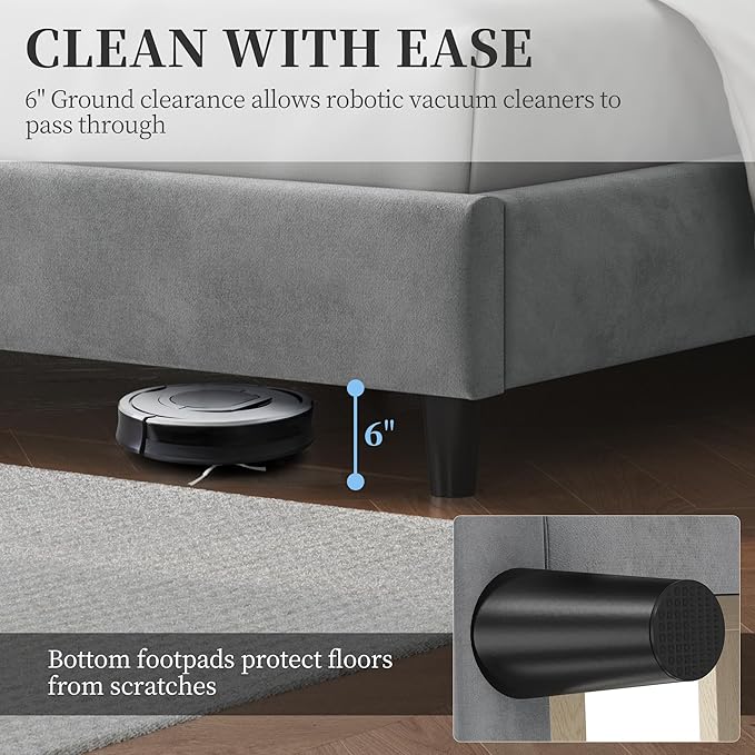 - Reasonable Under-bed Space: 6" ground clearance allows vacuum cleaning robots to pass through easily, making cleaning this queen bed frame a breeze for you