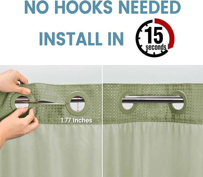 - 【Thick "Cotton" Type Fabric Shower Curtain】Made from expertly chosen and tested Heavyweight Polyester Fabric, touches like a cotton feel. 230GSM (Gram Per Square Meter), about 0.8 pounds heavier than normal 90GSM fabric shower curtains; Honeycomb waffle weave pattern adds elegance to your bathroom