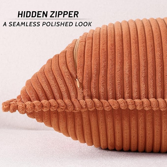 Mecatny Corduroy Fall Throw Pillow Covers 18x18 Set of 2, Neutral Decorative Soft Burnt Orange Boho Couch Pillow Covers with Broadside for Sofa Living Room, Rust