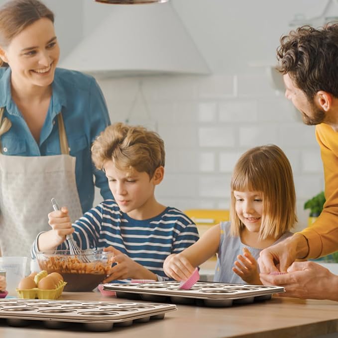 - ✔【Nonstick Muffin Pan & long-lasting Design】- Dive into a hassle-free baking journey with our nonstick muffin pans made from gold carbon steel. Perfect for both novices and baking enthusiasts, our design ensures muffins slide out effortlessly. Made to last, this long-lasting bakeware is a kitchen essential.