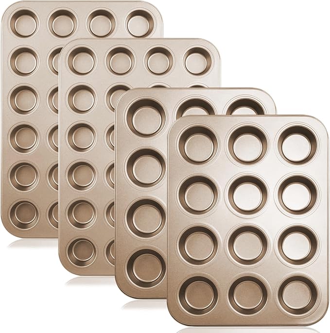 Nsmykhg Nonstick Muffin Pan,4 Packs Nonstick Muffin Pan, Mini Cupcake Pans Set, 12 Cup and 24 Cup Gold Carbon Steel Bakeware Muffin Tin Champagne Mini Muffin Tray Oven Safe Cupcake Mold