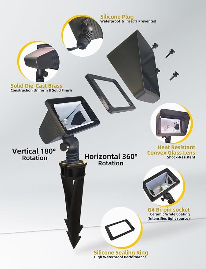 - UNIQUE DESIGN: Enhance your outdoor aesthetics with this beautifully crafted landscape light made of die-cast brass. The fixture is rated IP65 weatherproof and complements the architecture of the surrounding area. With a superior corrosion resistance and pressure resistance, this outdoor floodlight have longer service life and longer lasting than aluminum and plastic lamps.