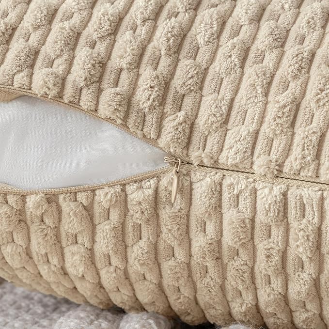 MIULEE Throw Pillow Covers Soft Corduroy Decorative Set of 2 Boho Summer Striped Pillow Covers Pillowcases Farmhouse Home Decor for Couch Bed Sofa Living Room 12x20 Inch Beige