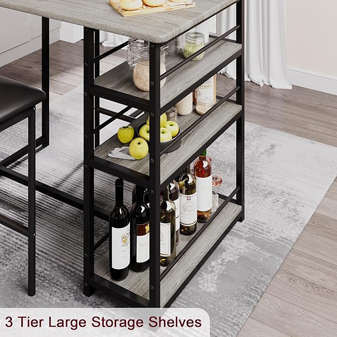 GAOMON Dining Table Set for 2, Kitchen Table and Chairs for 2 with Upholstered Chairs, 3 Piece Counter Height Bar Kitchen Table Set with 3 Storage Shelves for Small Space, Apartment, Rustic Gray