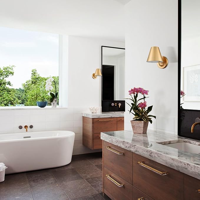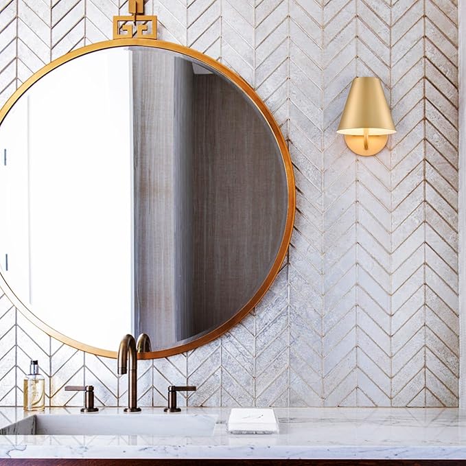 DIRYZON Modern Brass Wall Sconce Light,Metal Barn Wall Lights for Living Room Bedroom,Industrial Bathroom Wall Light Fixtures Wall Lighting