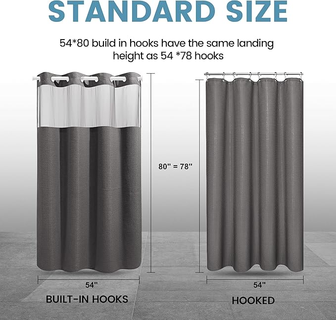 - 【Modern Style】This waffle shower curtain will complement any bathroom - use at home, apartment, condo, hotel, camper, RV, dorm, school shower, college dorm room, athletic club, gym and everywhere else you need a reliable shower curtain. Cloth fabric, machine washable and easy care.Water Resistant: Both shower curtain and liner set are water repellent to let water glide off and quick to dry