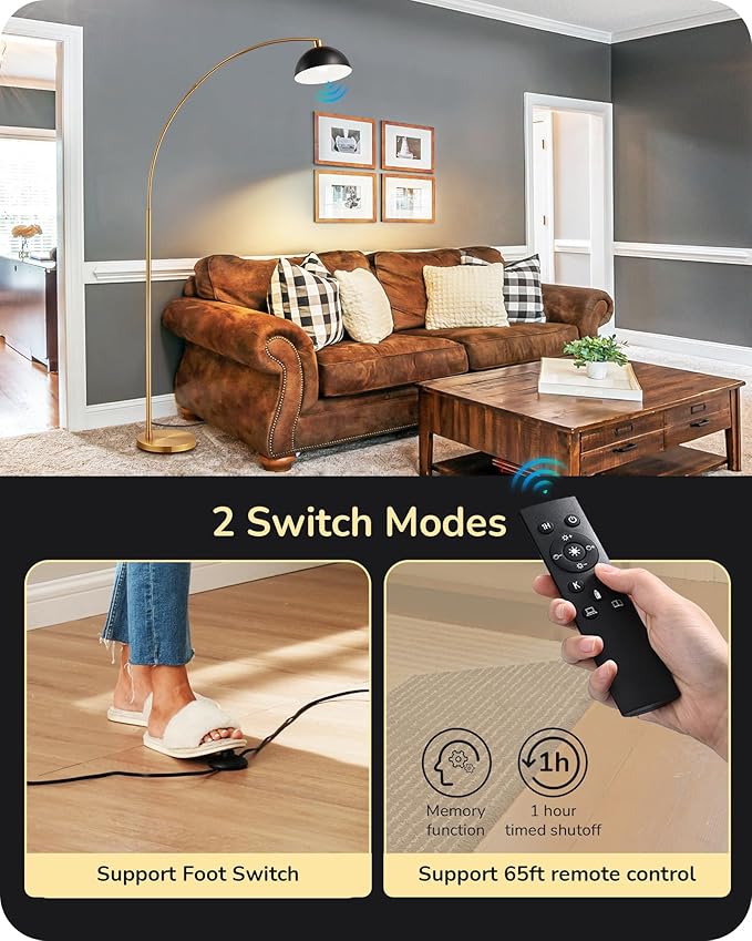 - [Multi-functional Remote & Bulb] With multifunctional remote control (timer&memory function) and multiple control modes, our unique floor lamp supports 65ft control range; foot switch and 79" cord convenient for the elderly and pregnant women without bending over; bulb included