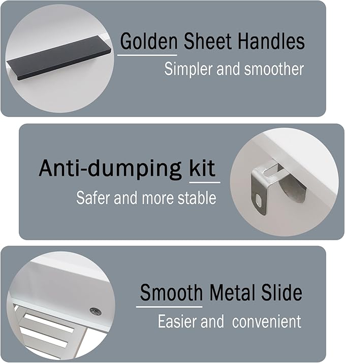 - Fantastic and Attractive Design: Considering practice and convenience, this white console table features golden sheet handles and smooth metal slide for easy access. The Console table is constructed with anti-dumping kit that is smoother and safer for the elderly and children. With 2 drawers and open shelf, narrow hallway table creates a charming and exquisite appearance and the easier and convenient space saving for magazines, glasses, cosmetics or other items. Modern console table with storage.