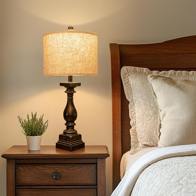- Retro and Elegant Design:This pair of table lamps designs with an antique black resin lamp body and linen fabric lampshade. This lamp not only looks classic and retro, but also creates an elegant atmosphere in your home. It matches many furniture styles such as industrial style, modern style, simple&minimalist style, Nordic style, etc