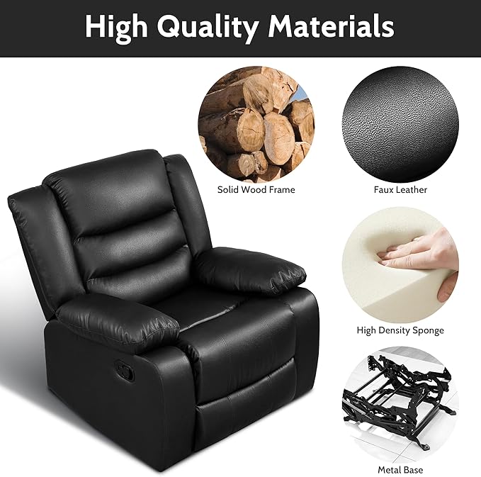 - 【CLASSIC ELEGANT DESIGN】- Our lazy boy recliner chair features a luxurious black faux leather upholstery that is soft to the touch and easy to clean, adding a touch of elegance and luxury to your living room, bedroom, man cave, or home theater. Enjoy a relaxing and comfortable movie night or cocktail hour with our home theater seating.