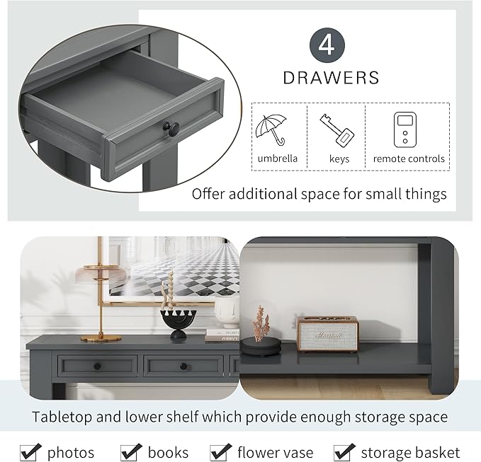 - 🌳【Console Table with Drawers and Shelves】This sofa table has drawers and bottom partitions to give you plenty of storage space to sort and store different items. Perfect for displaying decorations such as paintings, photos, flowers and other things you can think of