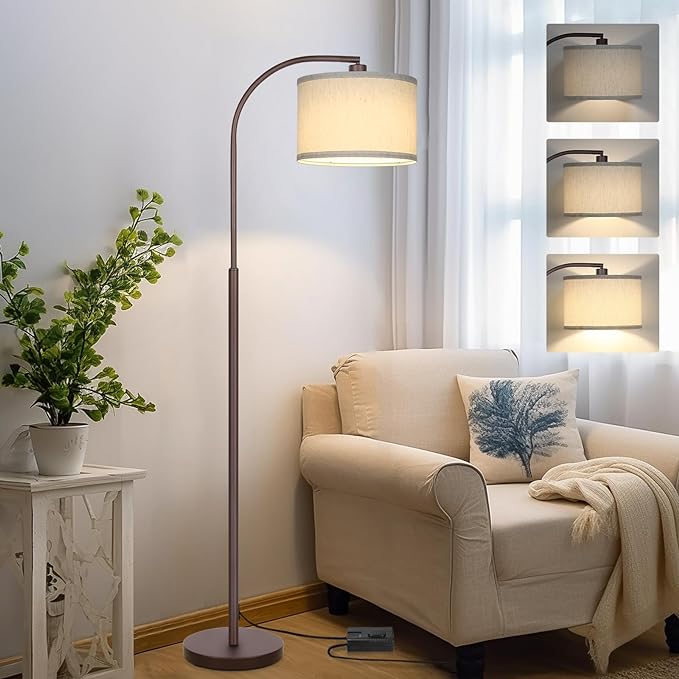 - [Classic & Modern Floor Lamp] Crafted in an elegant brown arched pole with a simple linen shade, this led floor lamp can be integrated with various decoration styles perfectly, including antique, contemporary, traditional, farmhouse, etc. Absolutely a wonderful piece for the bedroom, living room, office, or study room.
