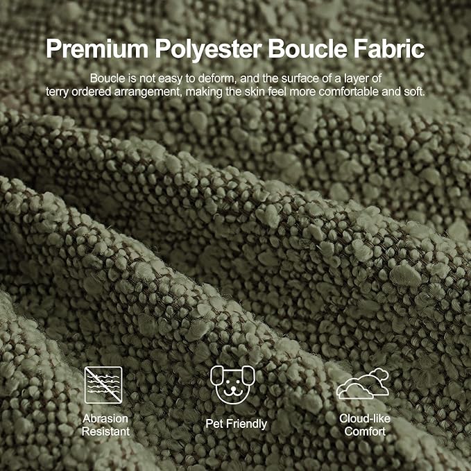 - PREMIUM MATERIALS: This modern minimalist couch is crafted with premium polyester boucle fabric,it is soft and comfortable enough to touch,skin-friendly, durable and not easy to pilling.If your pet likes to claw the sofa, please don’t worry, the fabric is sturdy enough,so won't leave any marks.