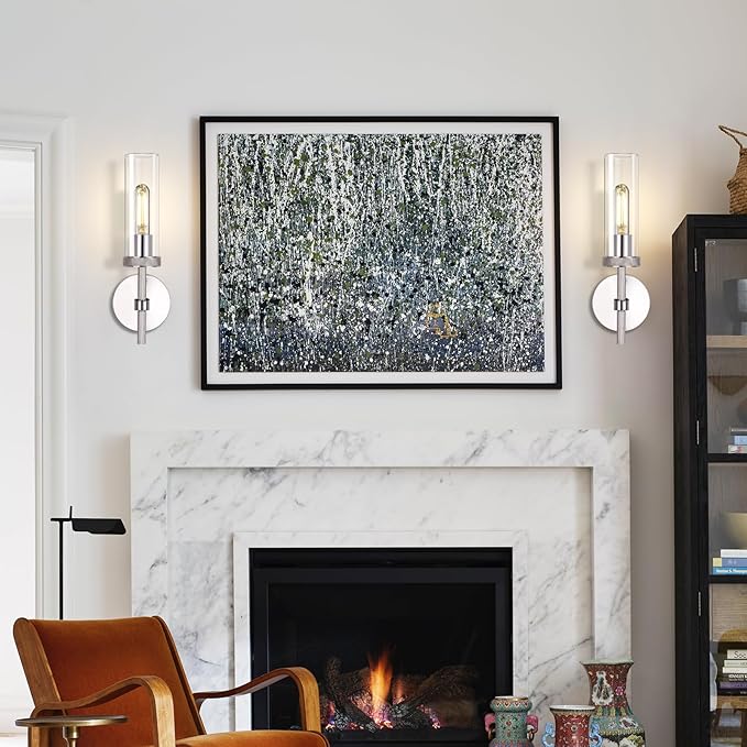 Chrome knurled Wall Sconces Set of Two, 14" Sconces Wall Lighting Indoors, Bathroom Vanity Light Wall Sconces, Wall Lights for Living Room Bedroom Hallway Kitchen Bathroom Mirror Including Bulb