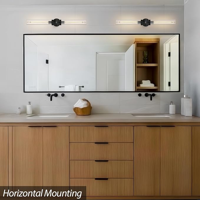 - Two mounting options: the cylindrical glass tube wall lamp has a bulb illumination range of 360°. You can mount it horizontally above the mirror or vertically on the left or right side of the mirror. Ideal for installation in bathrooms, bedrooms, living rooms, dressers, vanities, mirrored cabinets, doorways or entrances, hallways, foyers, staircases, or bar-cafes.