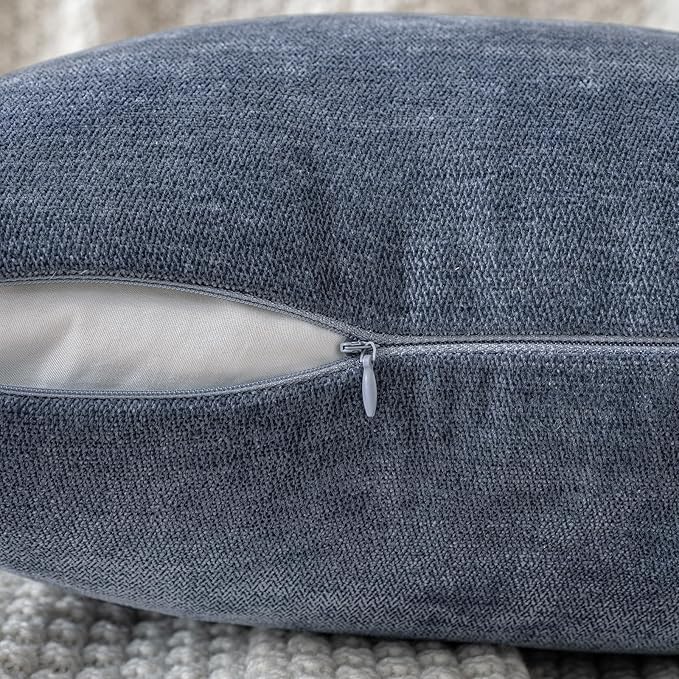 MIULEE Pack of 2 Blue Decorative Pillow Covers 12x20 Inch Soft Chenille Couch Throw Pillows Farmhouse Cushion Covers for Home Decor Sofa Bedroom Living Room