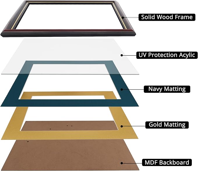 - MATERIAL: The frames are made of high quality white wood with a nice cherry finish. Durable high definition & UV protction acrylic protect your documents from dust, moisture and scratches, make your certificates great for years.